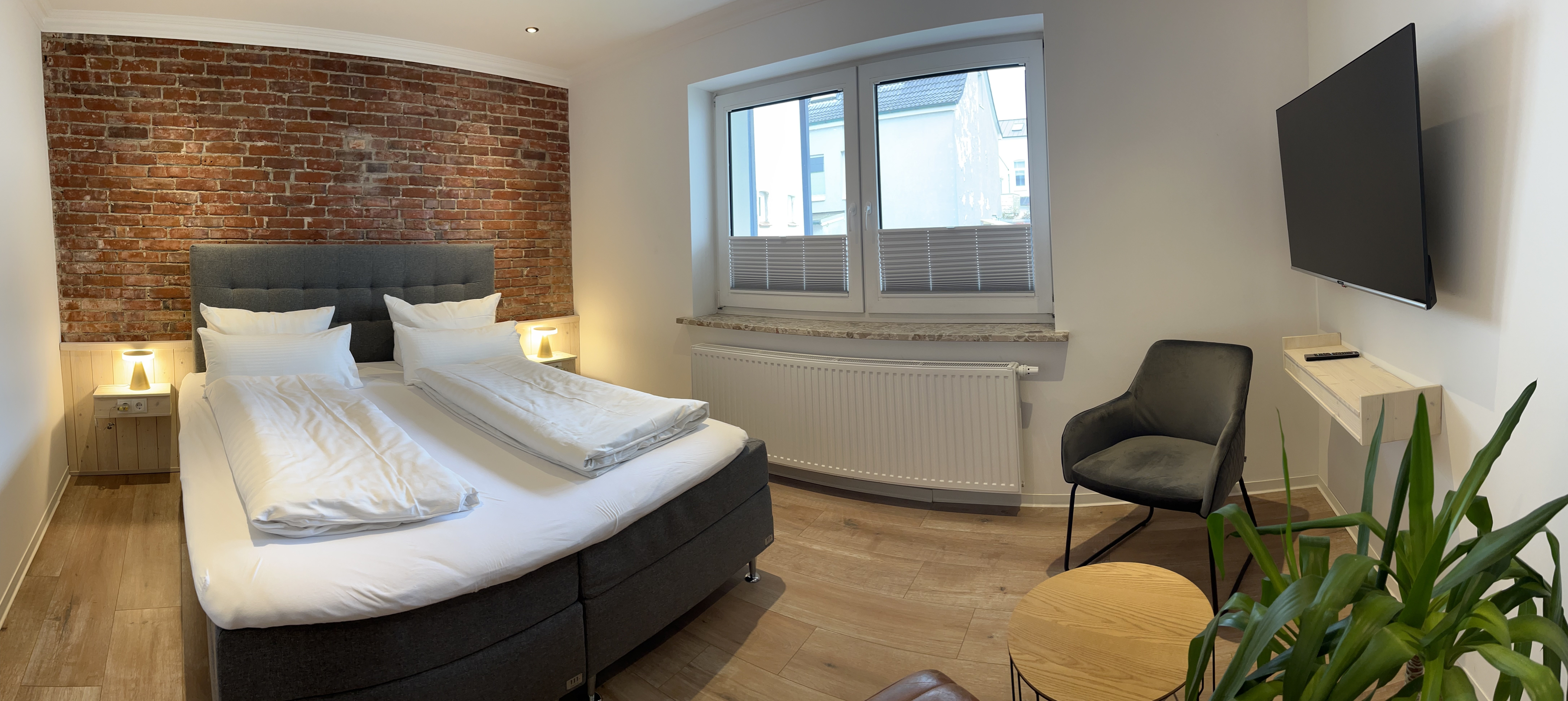 A | UTHENTISCH | Unsere Zimmer verfolgen eine klare Linie und sind, wie wir trotzdem sehr individuell. Es erwarten Euch zeitgemäße, helle, gemütliche 17 geräumige Doppelzimmer und 5 schnuckelige Einzelzimmer. Einige überzeugen mit ihrem Balkon mit seitlichem Meerblick.[2] |